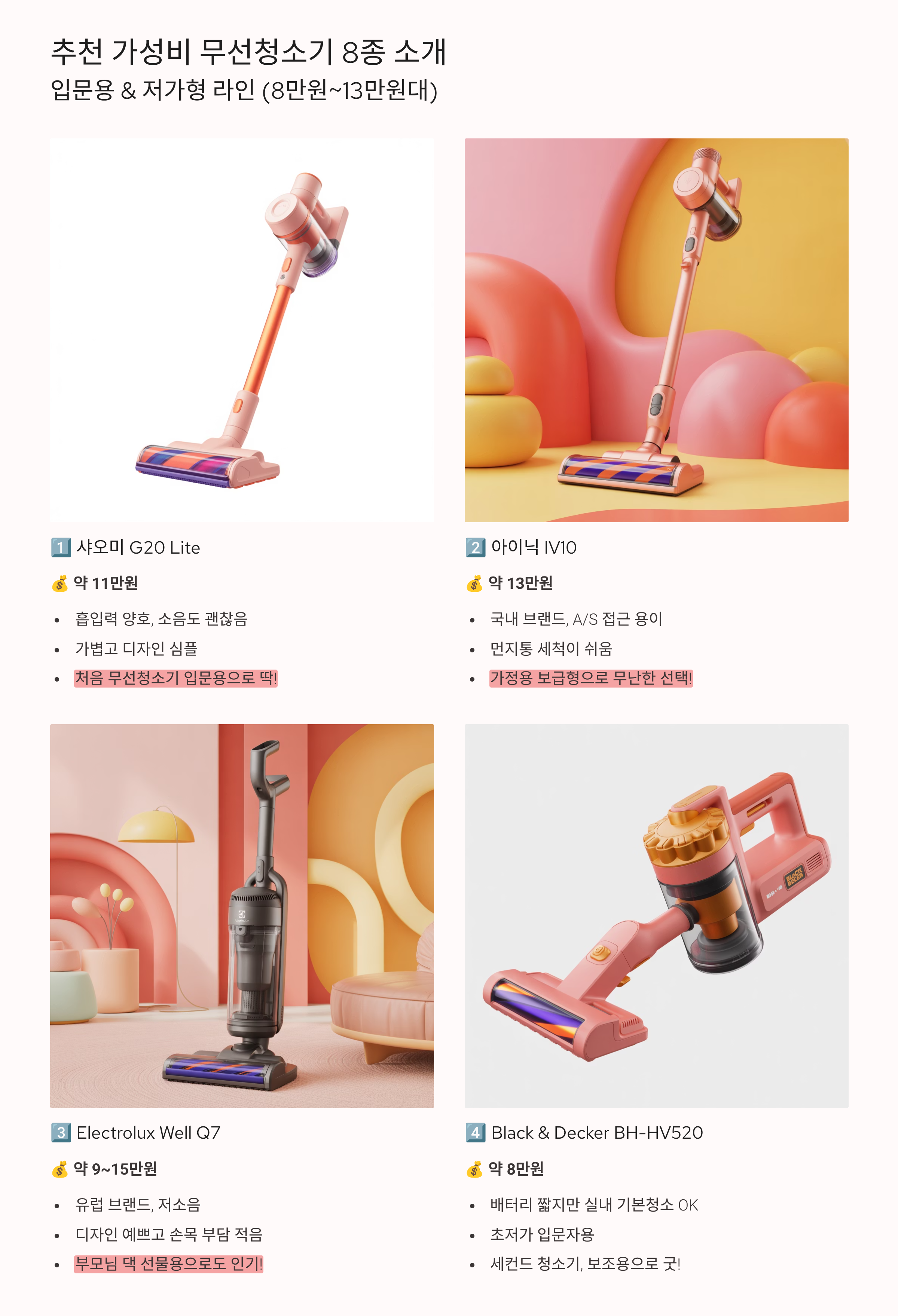 추천 가성비 무선청소기 8종 소개