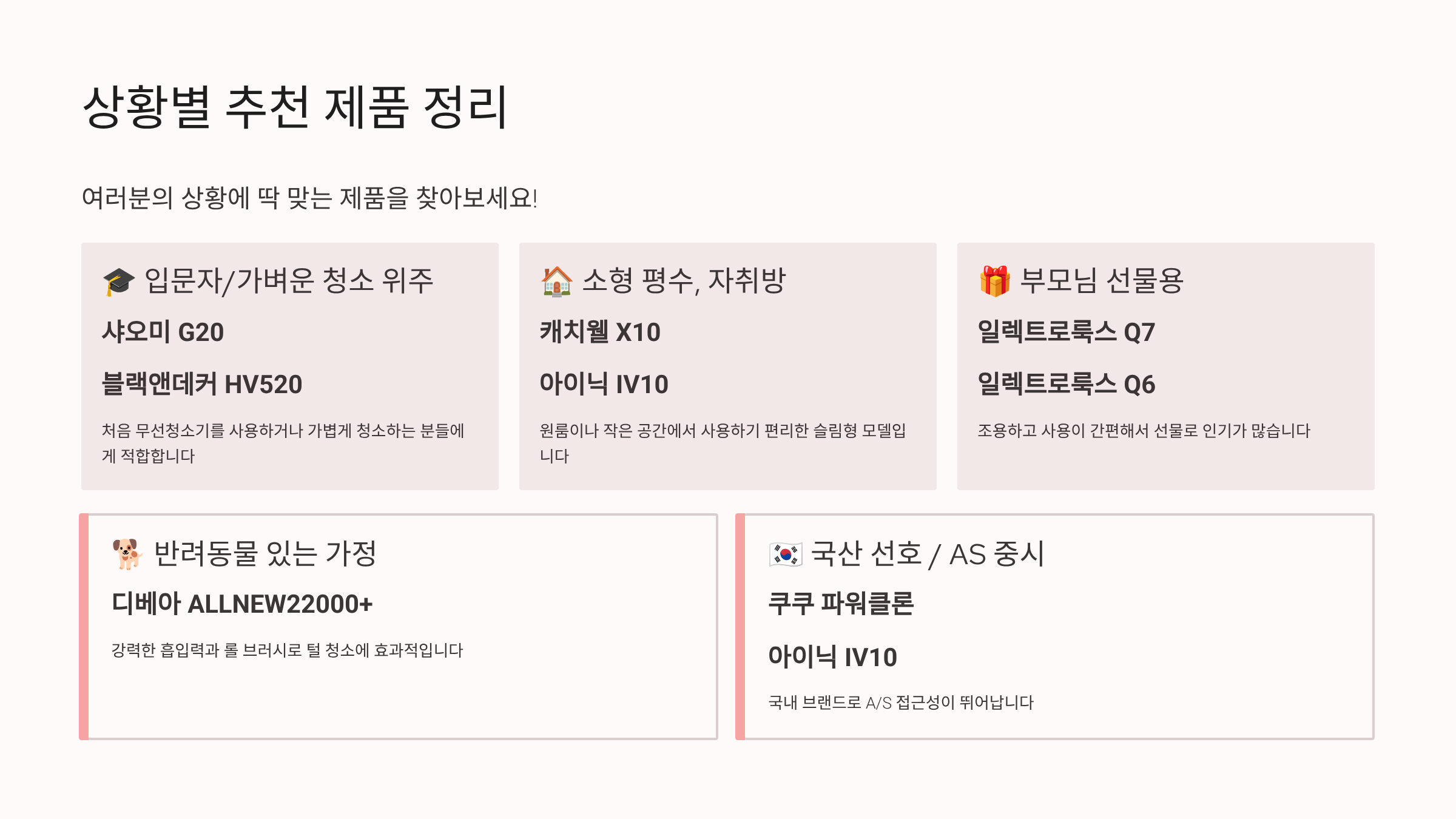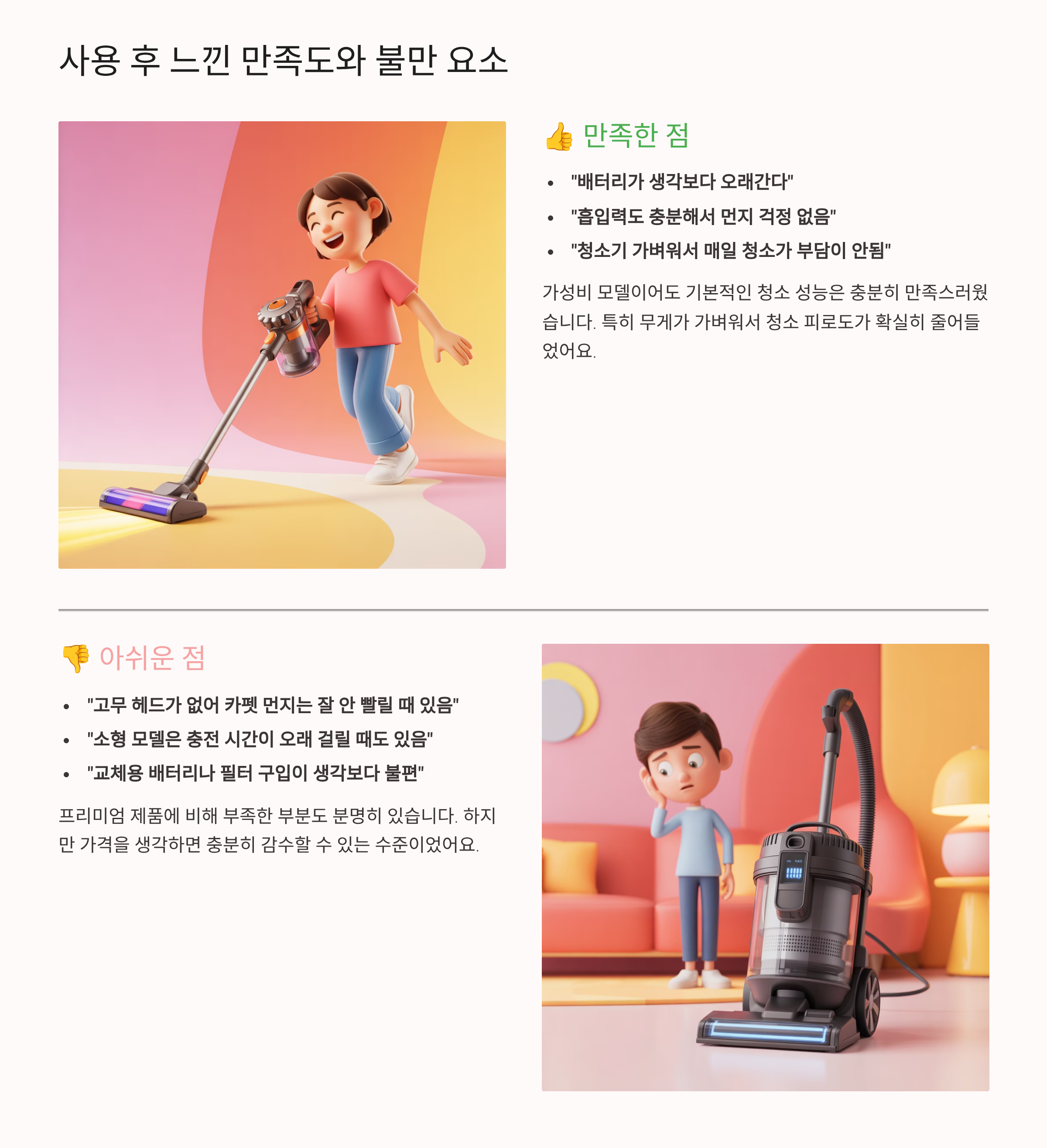 - "청소기 가벼워서 매일 청소가 부담이 안됨"