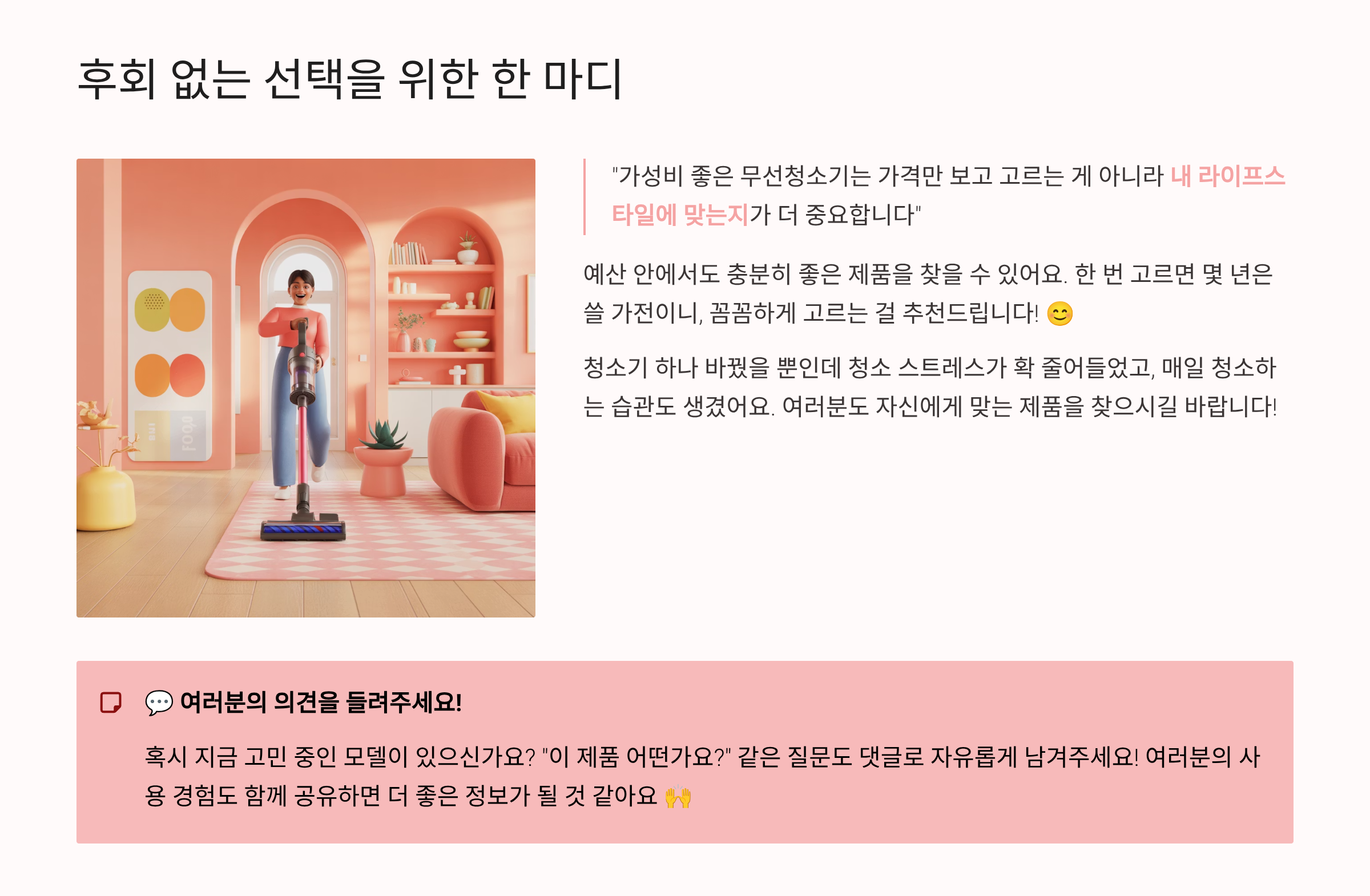 "가성비 좋은 무선청소기는 가격만 보고 고르는 게 아니라 내 라이프스타일에 맞는지가 더 중요합니다"