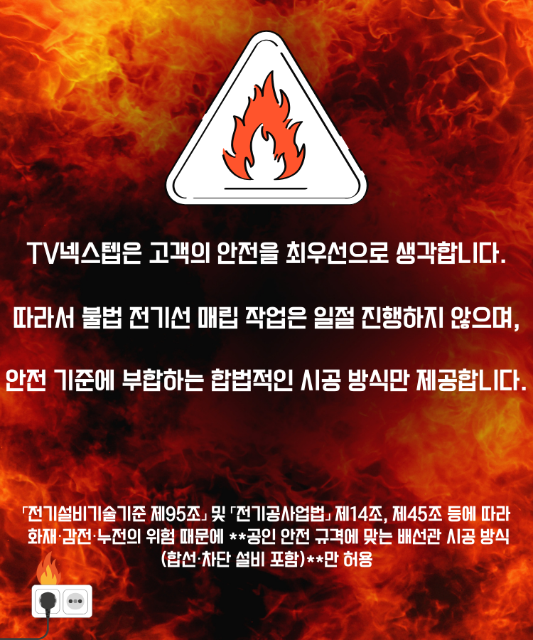 무타공 설치시 75인치 이상은 전문가 시공 권장입니다!