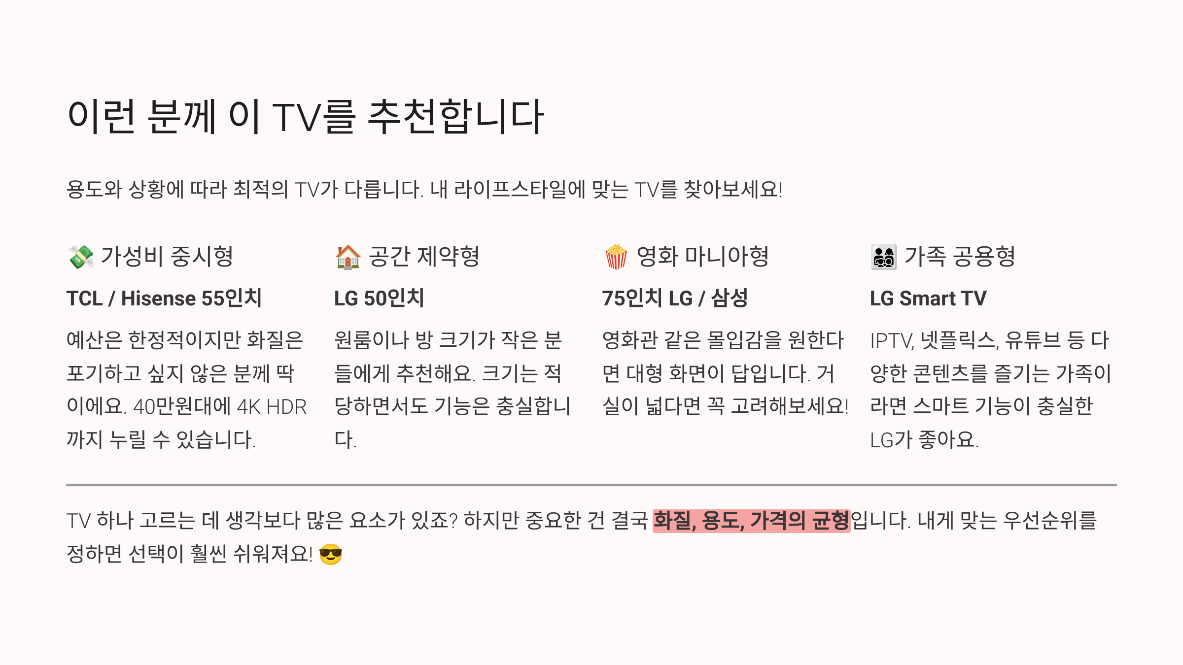 ## 📌 결론: 이런 분께 이런 TV 추천합니다