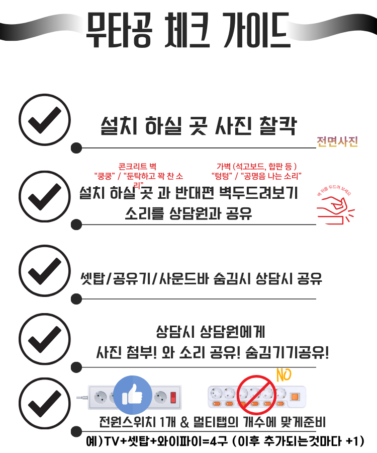 - 설치 환경 체크 - 무타공 필요 여부, 거실 밝기 등 확인