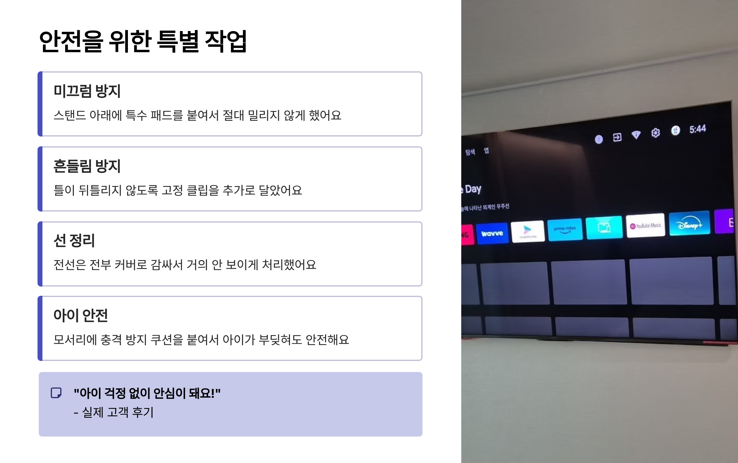 ### 무타공 설치, TV가 흔들리지 않나요?